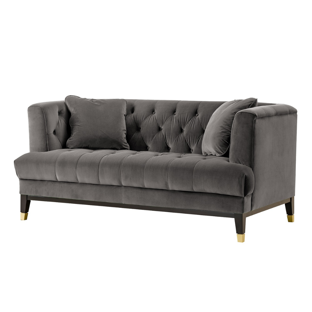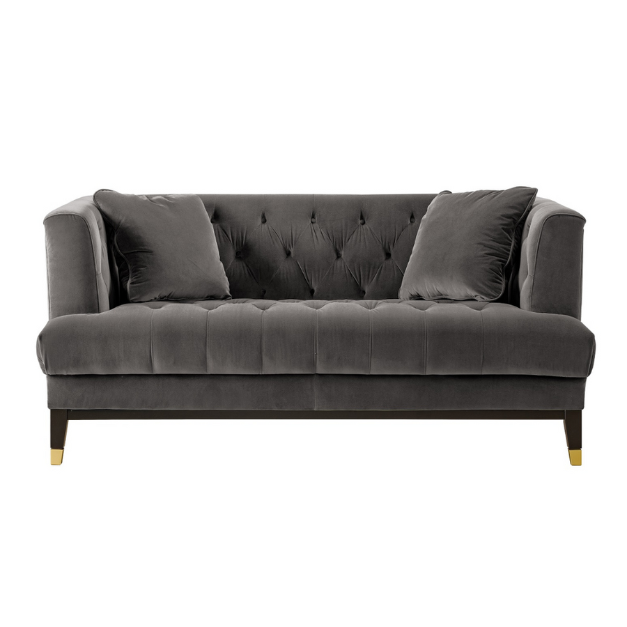 Warda Living Room Sofa by Roots Furniture made to impress and provide comfort. Designed by the Influencer Wardat Al Sharqiyah, this posh grey 2-seater with gold accents adds an opulence to any living room.