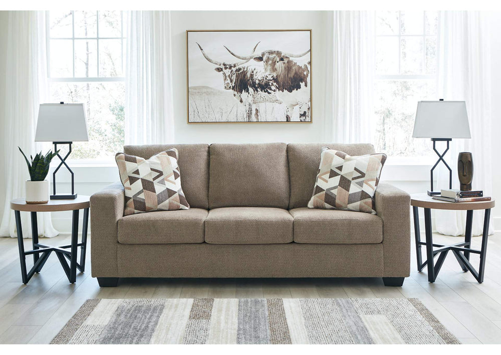 What happens when contemporary design meets plush comfort? Introducing the striking Bristaview sofa. Supple woven upholstery, ample cushioning and track arms deliver a chic modern vibe, making it the best seat in the house. All that’s missing is you—and your besties.