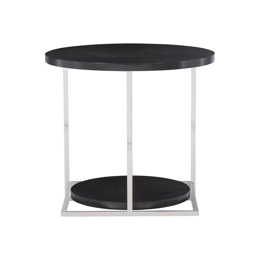 Silhouette is defined by bold contrasts, clean lines and a hint of Hollywood Regency glamour. The Silhouette free-standing etagere highlights a minimalist form with dramatic details in a chic palette of black and white. Creating visual intrigue, intersecting planes have a touch of asymmetry. The open design leaves a space feeling airy and light.218.44x41.275x168.91 HxDxW (cm)