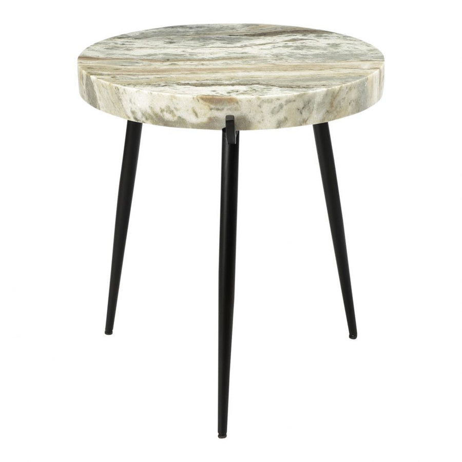 A sturdy iron base cradles a generous slab of marble in the Brinley marble accent table. Light brown marble creates a warm feel, while a polished finish sets a sophisticated tone. Note that some variations in color and pattern of the marble should be expected.