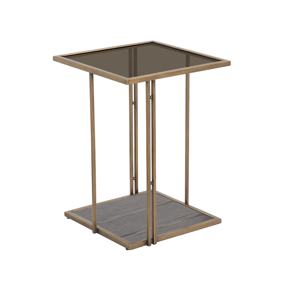 New from our Inspire Me! Home Decor x TOV collection, the Emma Tables are immediate fan-faves. These transitional style coffee and side tables dazzle with smokey glass and trending warm wood tones. Our signature brass iron base lends that element of EXTRA.