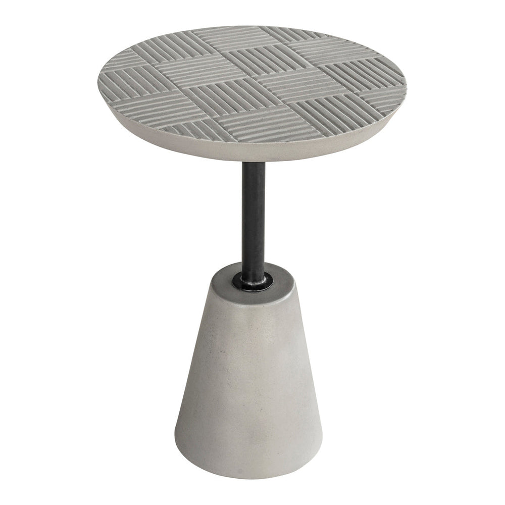 The Foundation Outdoor Accent Table is a building block for creating the sleekest outdoor patio experience yet. A round, textured tabletop stands proud on a steel beam balancing on concrete. This solid look is here to stay, rain or shine.