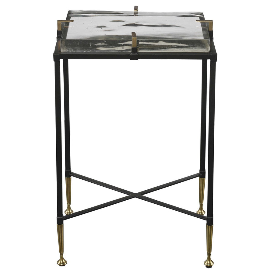 Inspired by French Industrial design of the late 19th century, the Swoop Console/Bar is stylish and functional. The minimal design in satin black is enriched with solid brass button finials. The white honed marble and glass shelves provide ultimate stylish function.