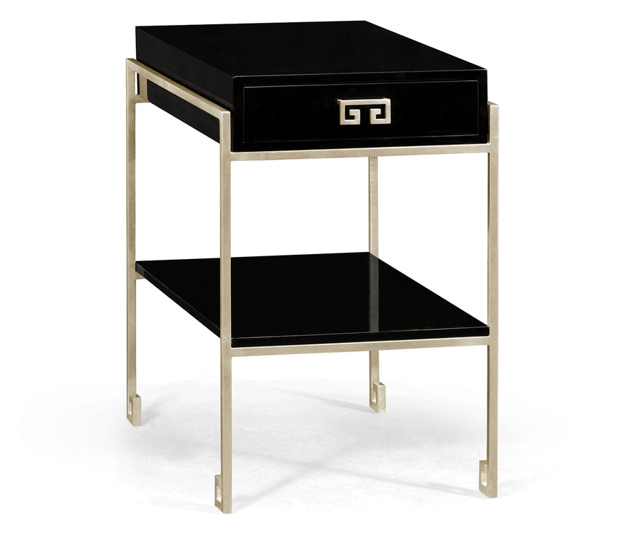 JC Edited - Simply Elegant Collection - Silver Iron End Table with Smoky Black Drawer