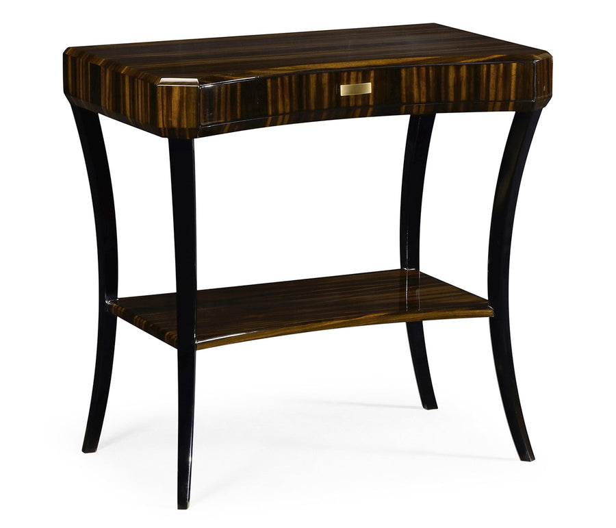 JC Modern - Ebony Collection - Rectangular Art Deco Macassar Ebony High Lustre Side Table with Drawer