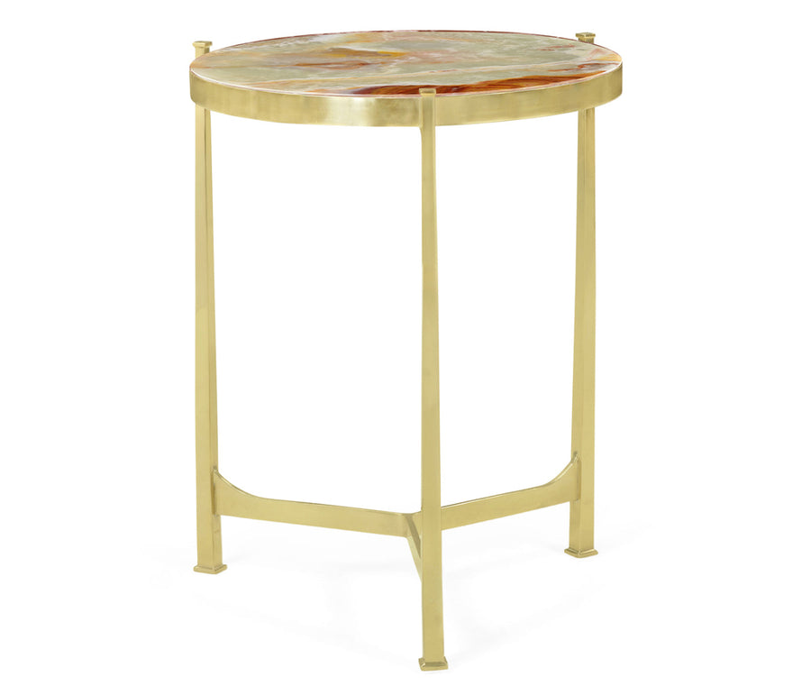 JC Modern - Luxe Collection - Medium Solid Brass & Green Onyx Top Round Lamp Table