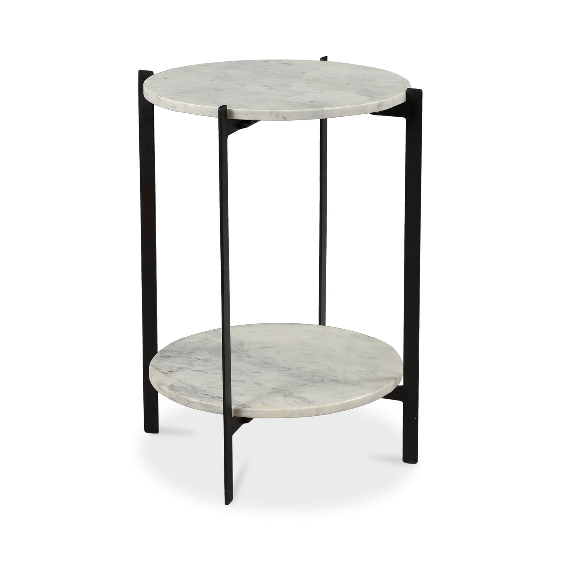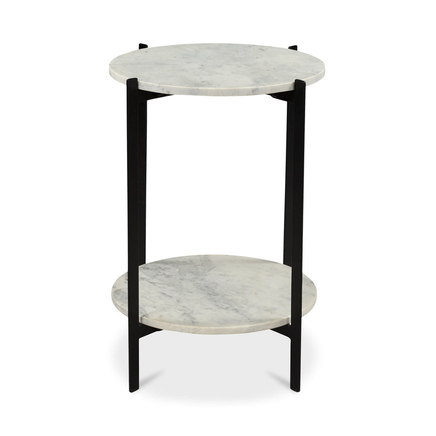 A modest piece of living room décor, the Melanie accent table keeps its class through tonal shades. Beautiful white marble slabs are held together by a two-tiered iron base with a matte-black finish. The end result of the Melanie accent table is a subtle contemporary piece that can be used for adding plant décor on one layer, and resting your coffee on the other.