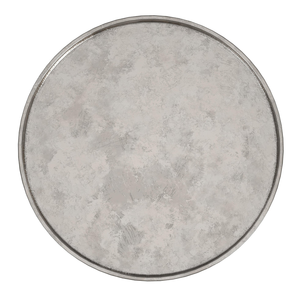 Elegant elongated table profile keeps drinks, personal items, and more within easy reach,Lipped tray top holds beverages, books, and more securely, at the perfect height,Silver aluminum construction is distressed for an industrial-influenced modern look,,Made of durable metal for lasting strength and support,No assembly required