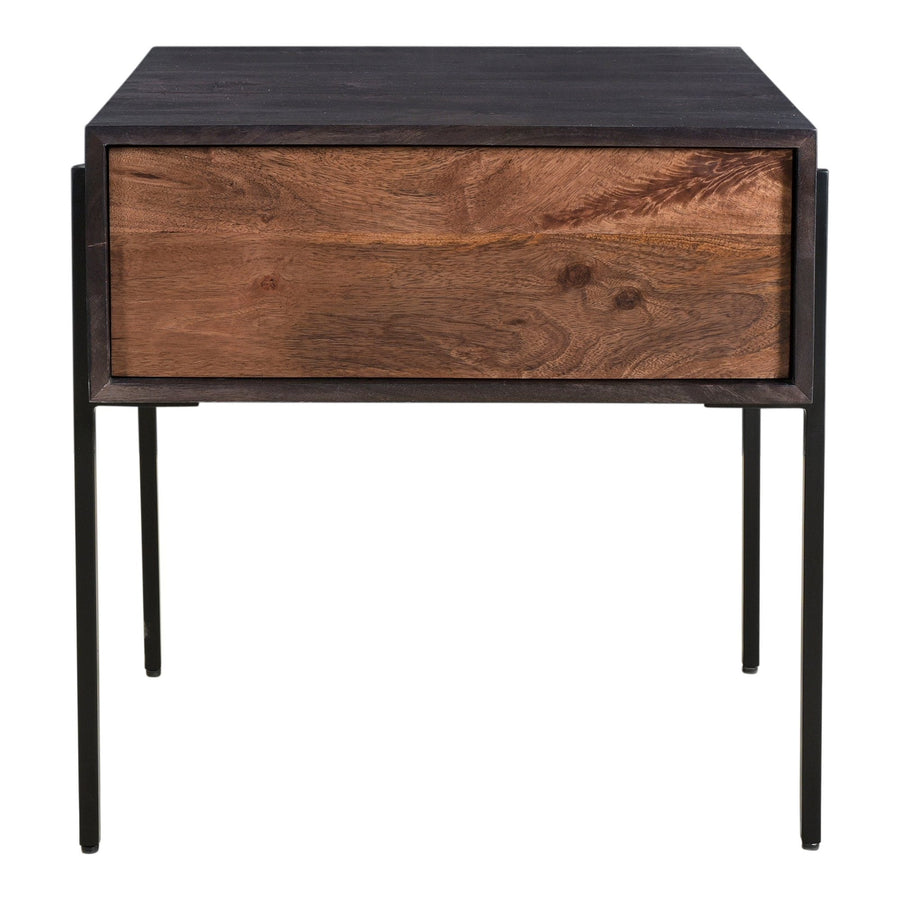 Bring the rich organic hues of solid mango wood into your living room with the Tobin Side Table. One spacious drawer provides subtle organization for smaller items for a clutter free space. The side table's sleek ion frame maintains a modern industrial look in any space.