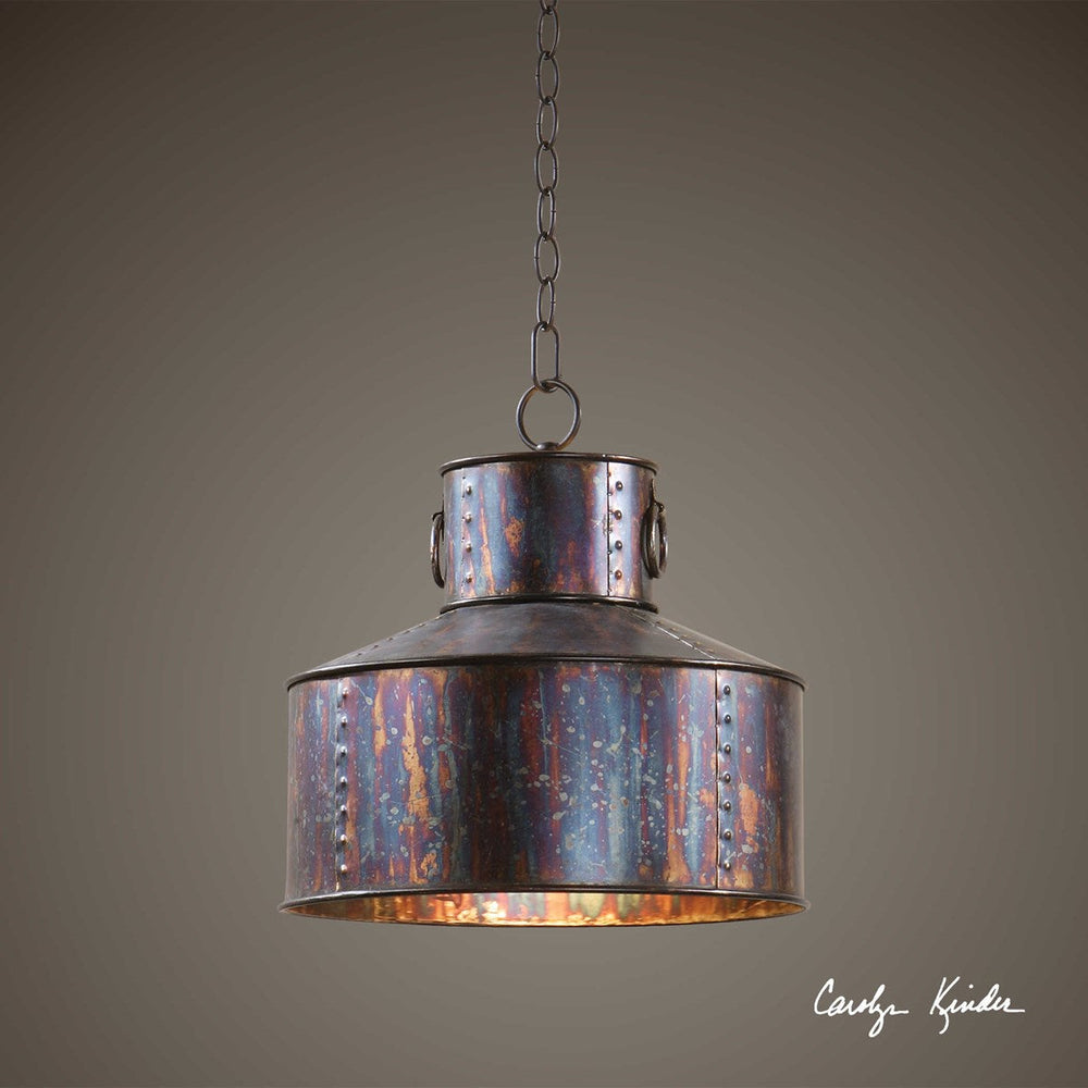 Complex Tonalities Of Metallic Oxidation Enrich The Classic, Simple Shape Of The Giaveno Pendant. Supplied With 15' Wire And 7' Chain For Adjustable Installation.