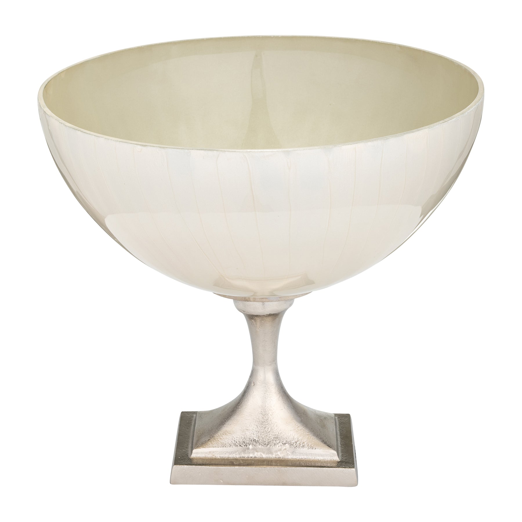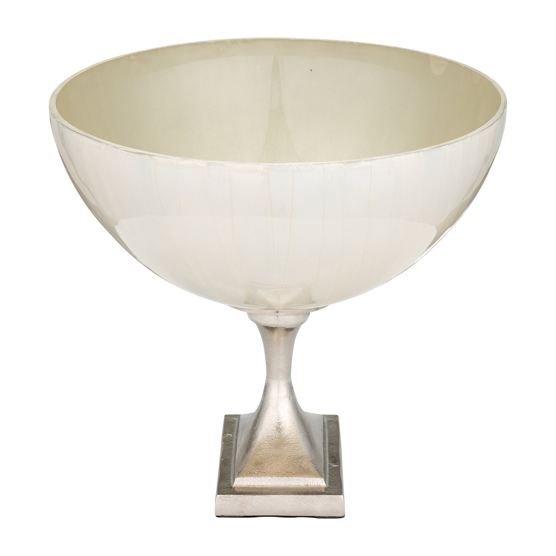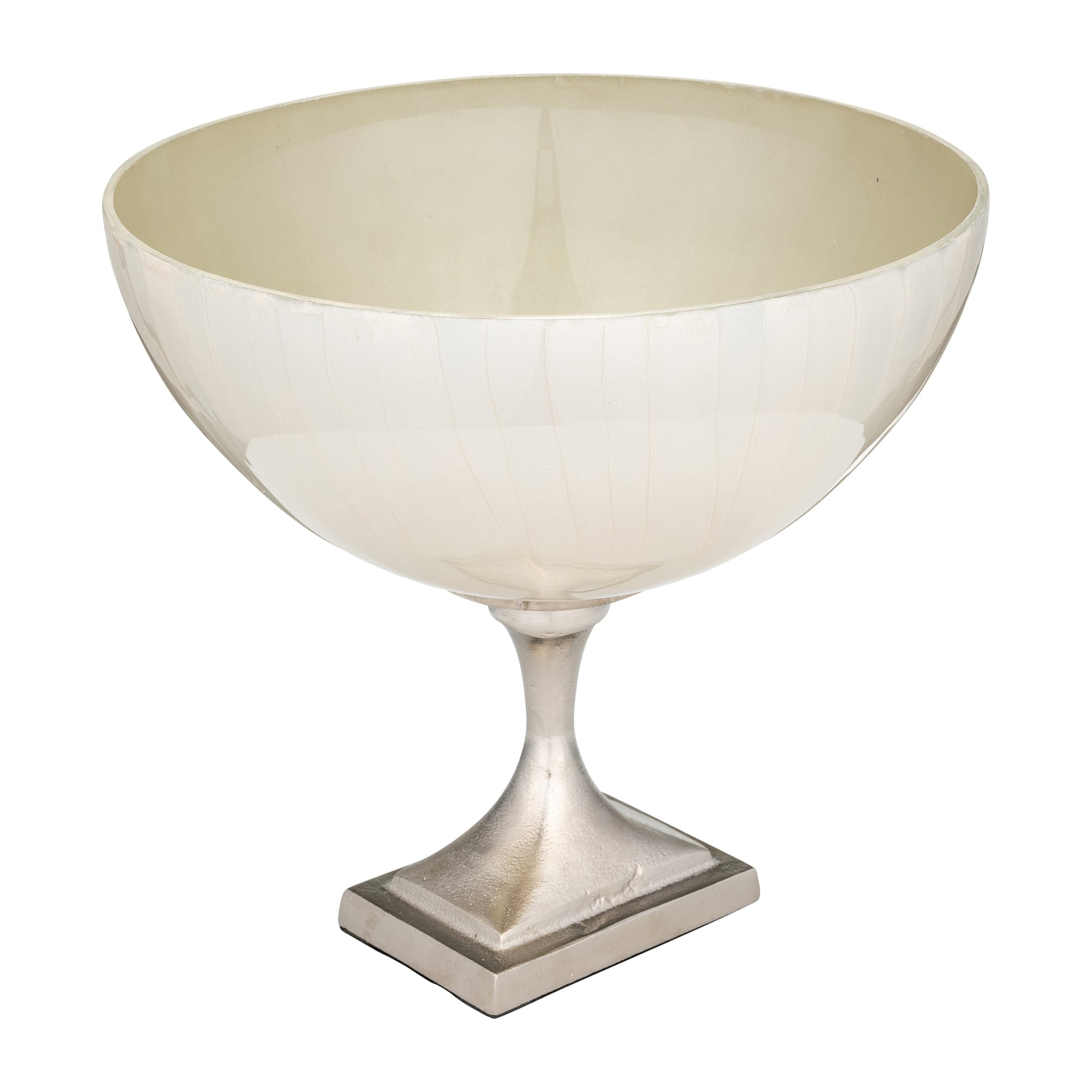 GLASS, 11" BOWL W/ METAL STAND, PEARL WHITE