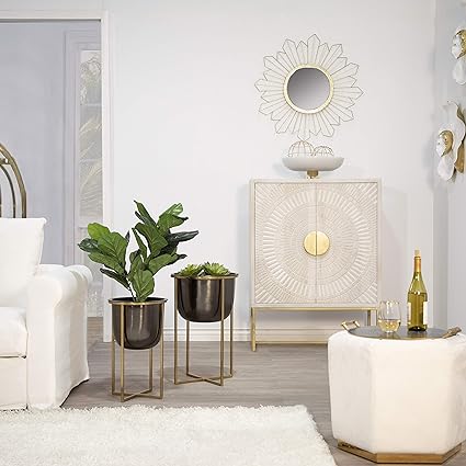 MARBLE 12" BOWL W/ METAL BASE, WHITE
