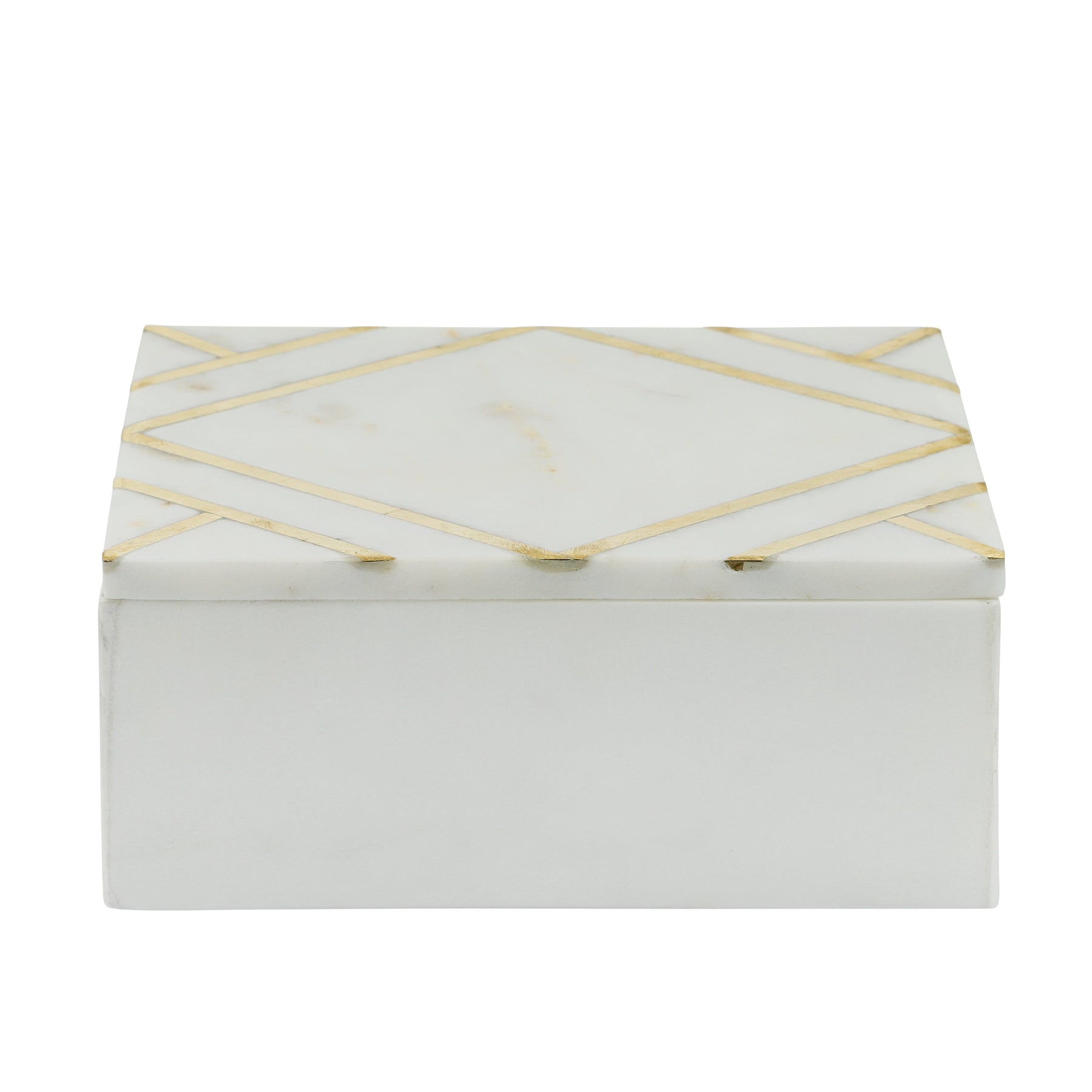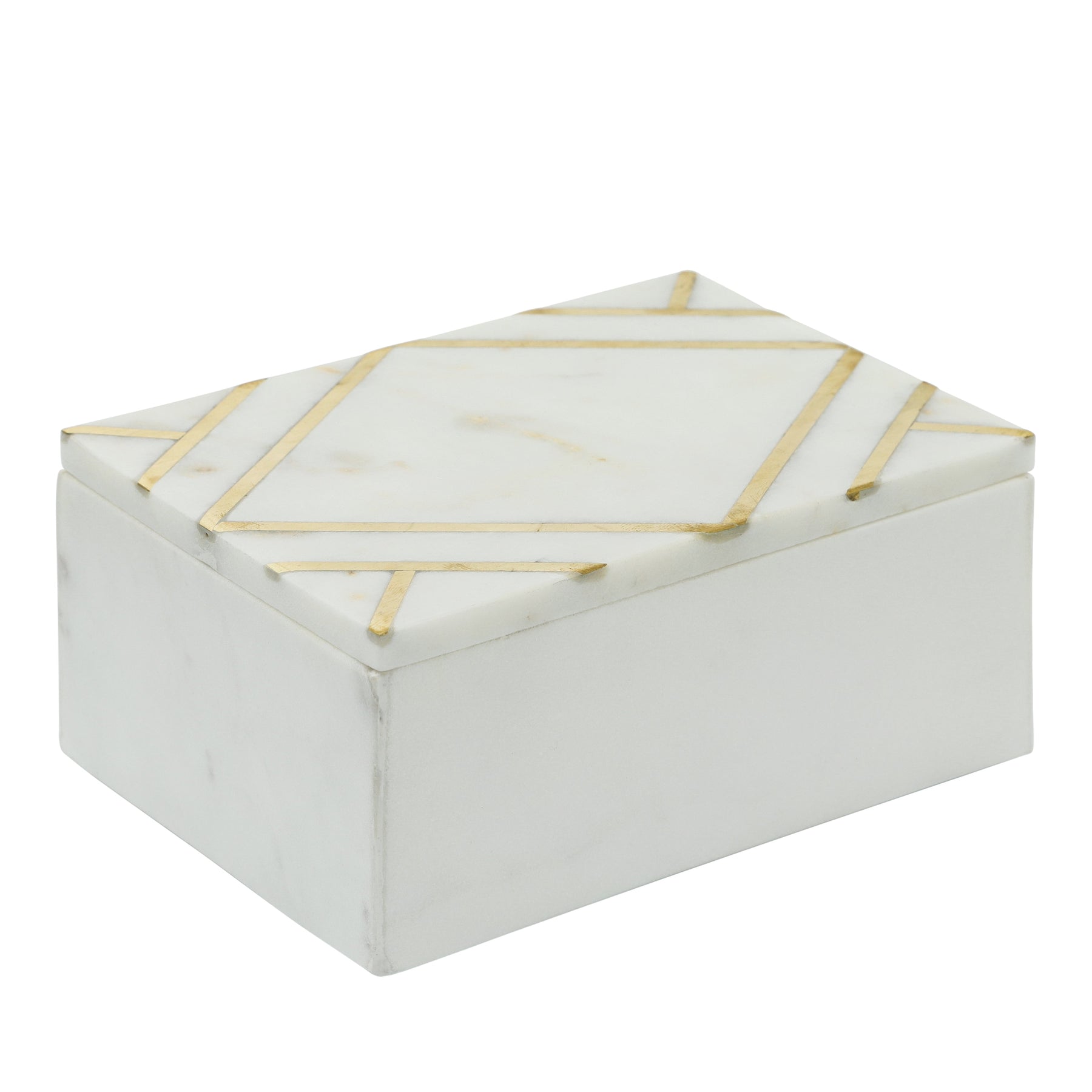 MARBLE 7x5 RECTANGULAR BOX W/GOLD INLAYS,WHT