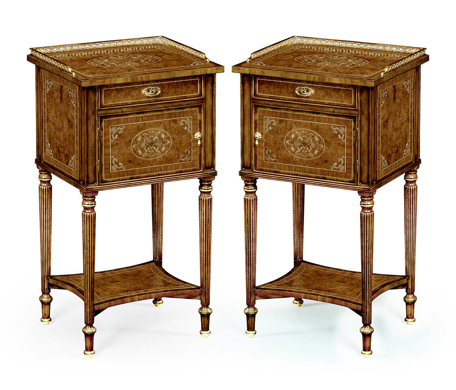 Pair of Burl & Mother of Pearl Bedside Cabinets with Undertier