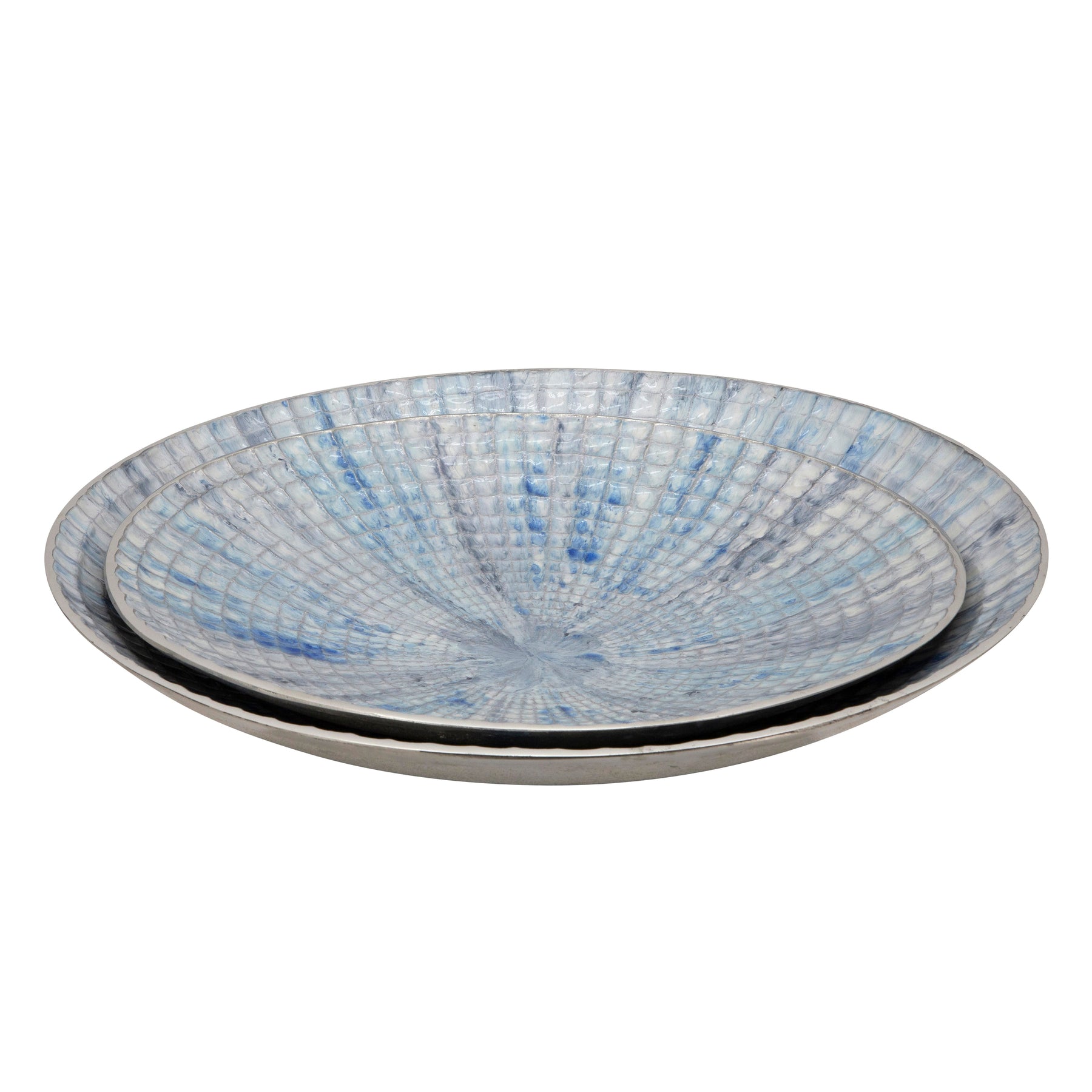 S/2 METAL 18/21" ROUND PLATES, IVORY/BLUE