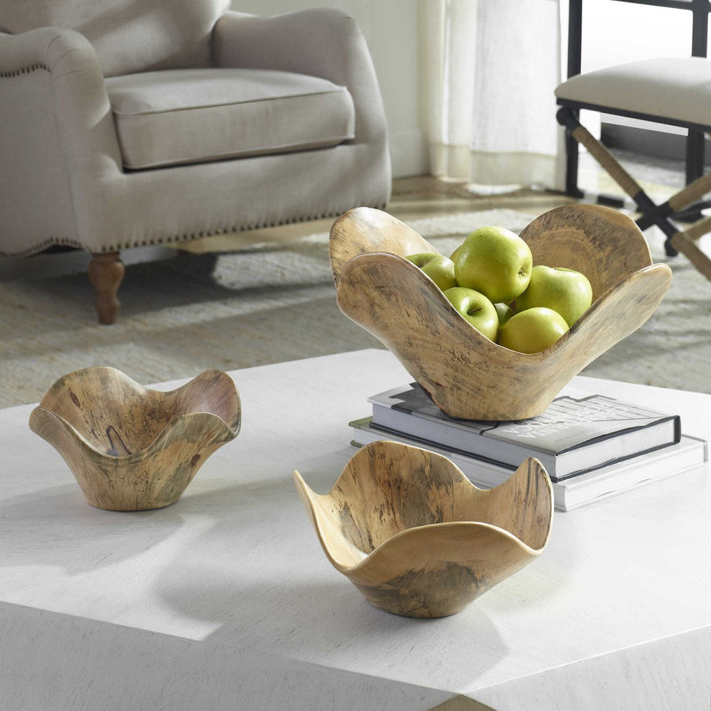 Naturally spalted tamarind wood, left in it's natural raw finish to highlight the unique grain patterns and colors. Because each is individually handcrafted, sizes may vary. Cracks and variations in the grain are natural to this type of wood. May be hung on a wall with keyhole hangers, or displayed as tabletop accessories.