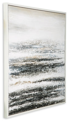 Dive deeper into your modern aesthetic with the Yeschester wall art. Abstract strokes of white, gray and navy convey the feeling of the sea in a storm. Creating a look that marries minimalism and bold style, this piece is a dynamic addition to your decor.
