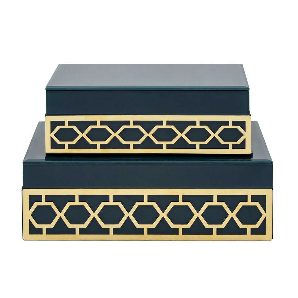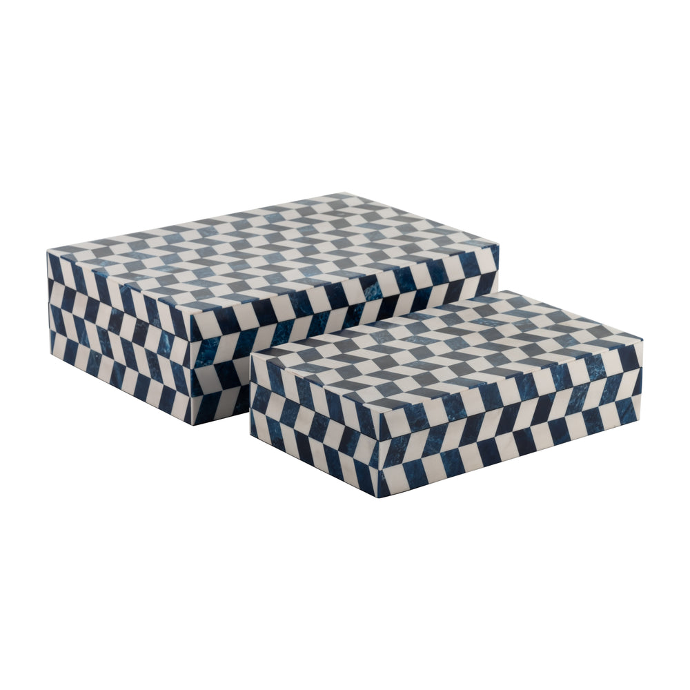 RESIN S/2 HERRINGBONE BOXES, BLUE