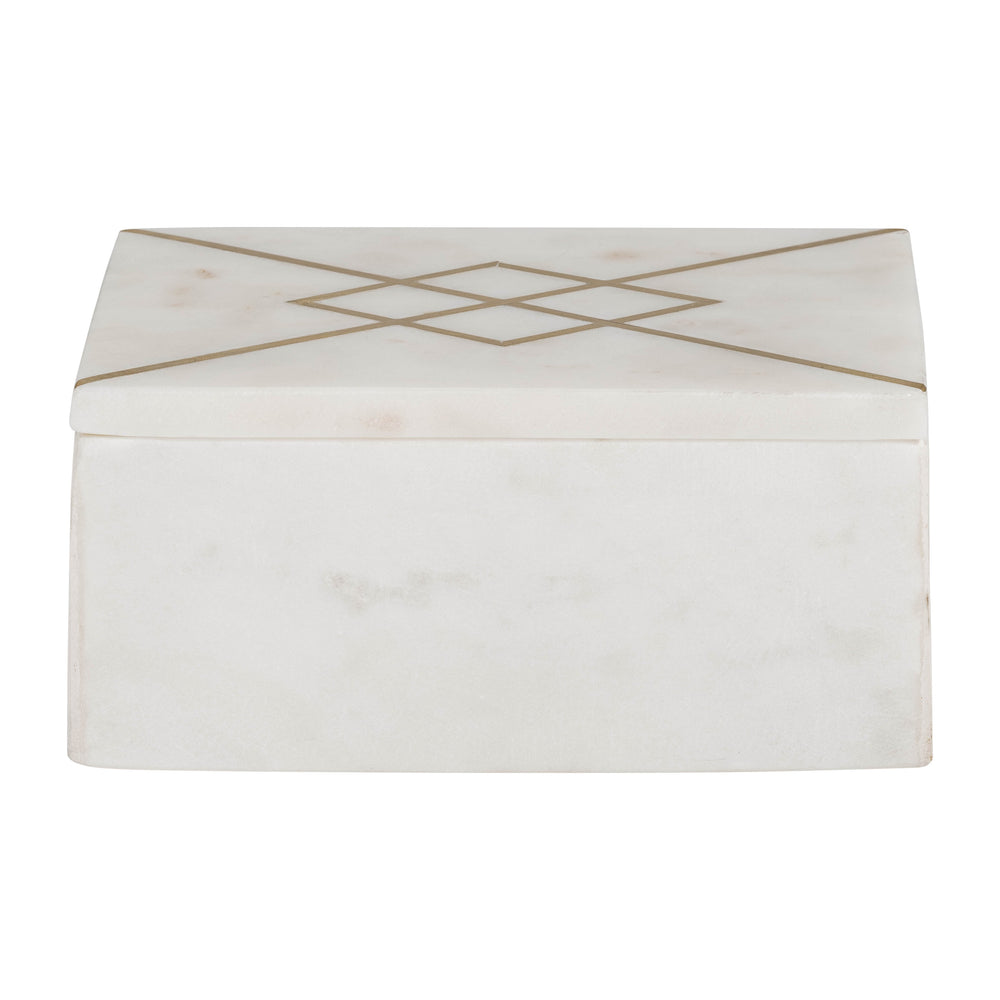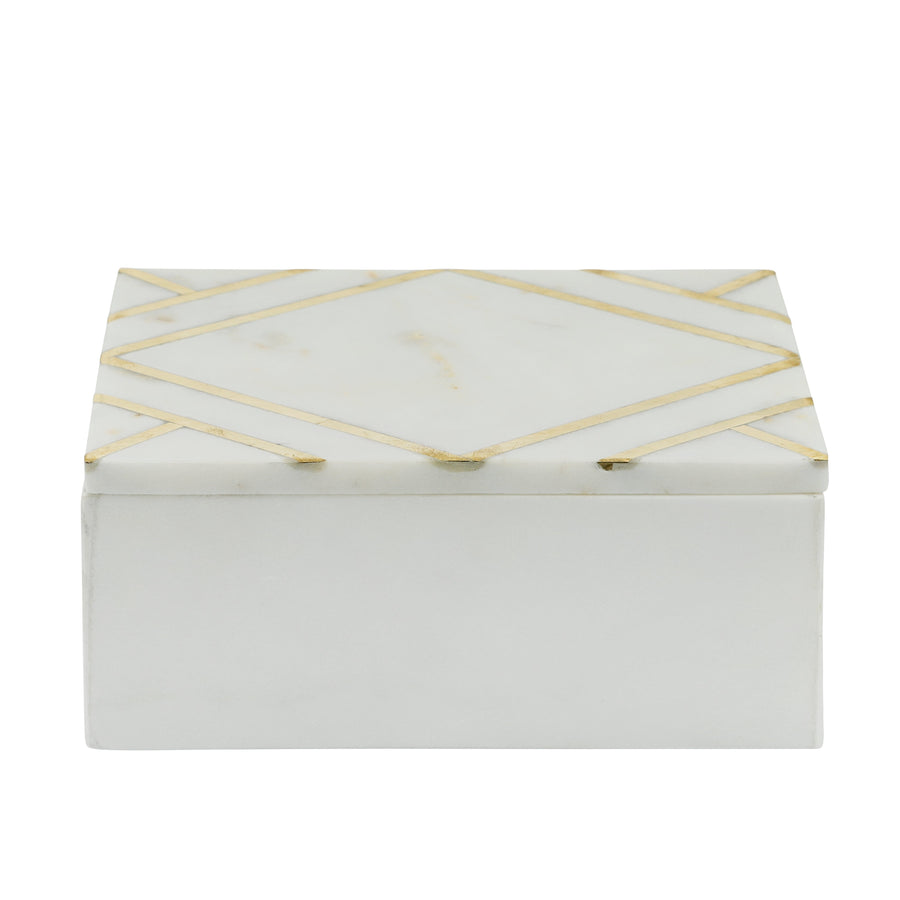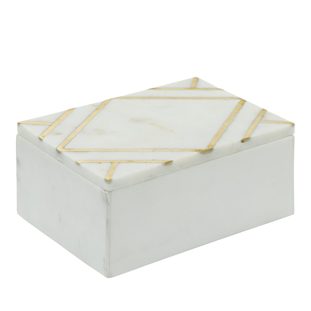 Marble 7X5 Rectangular Box W/Gold Inlays,Wht