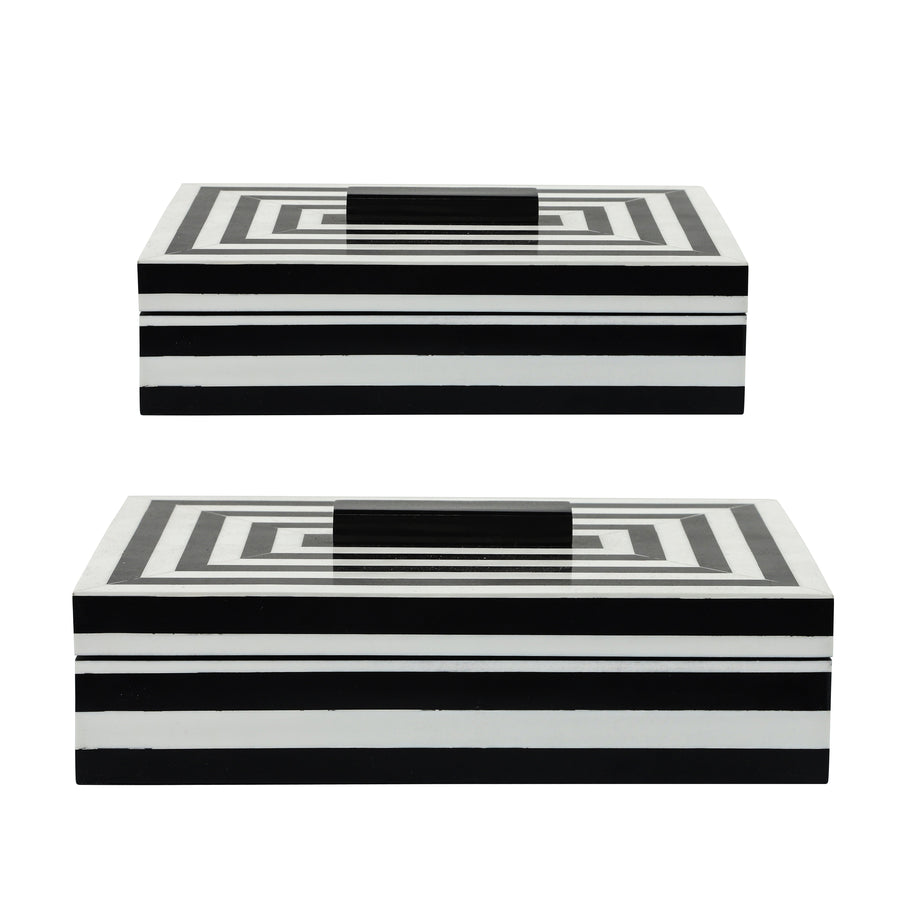 RESIN S/2 STRIPE BOXES, BLACK/WHITE