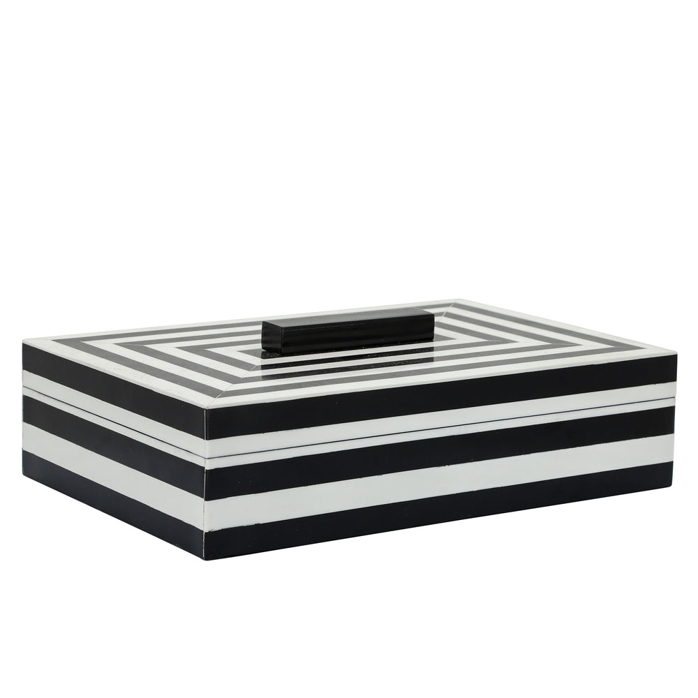 RESIN S/2 PINSTRIPE BOXES, BLACK/WHITE