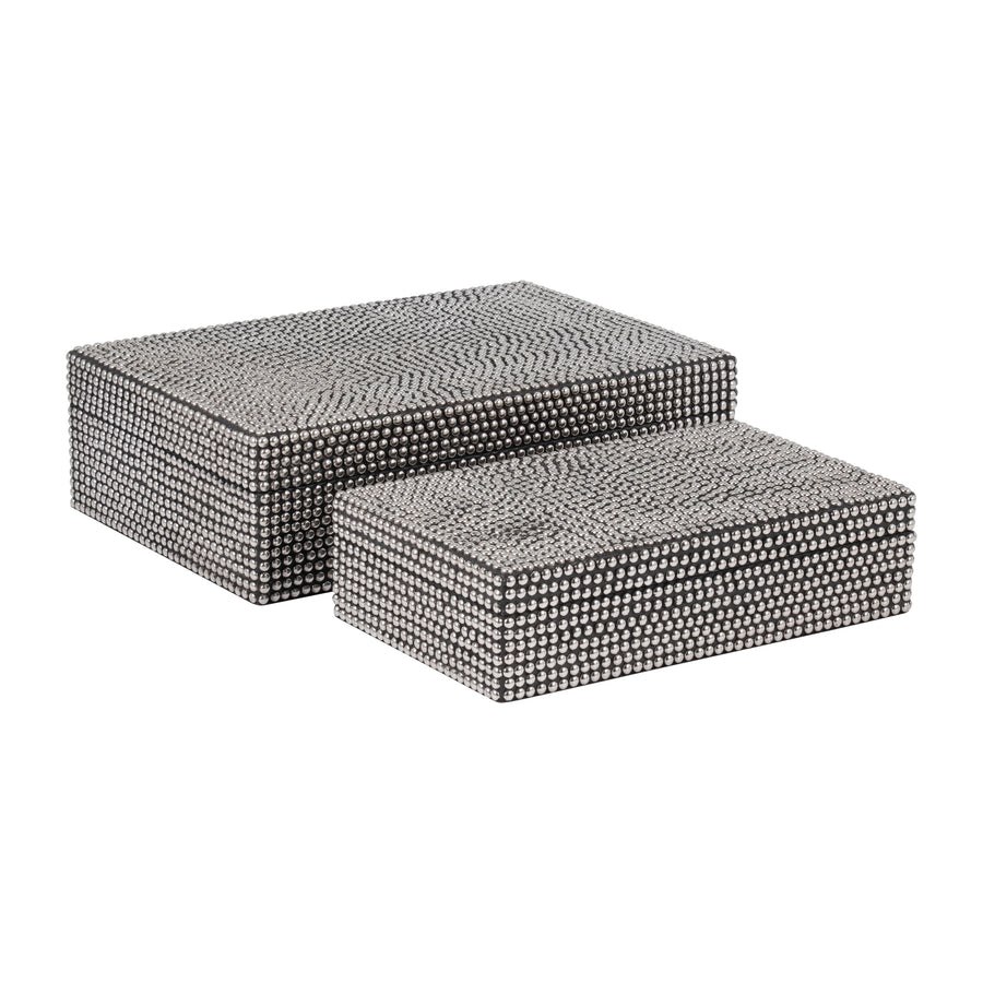 S/2 WOOD 10/12" VELVET JEWELRY BOX, BL