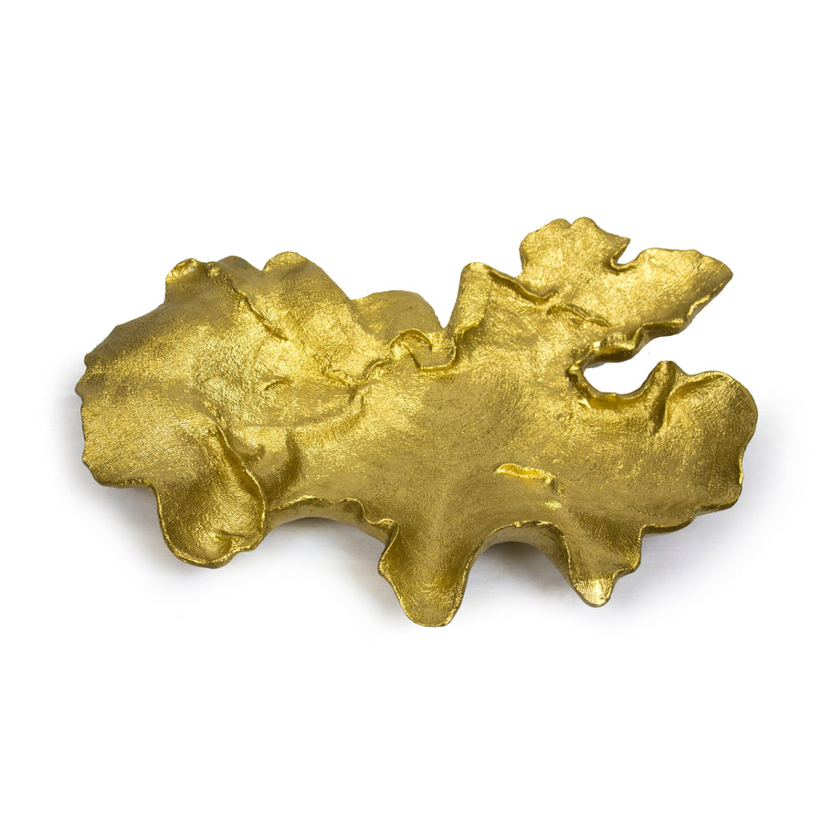 METAL, 13" ROUND LEAF TRAY, GOLD