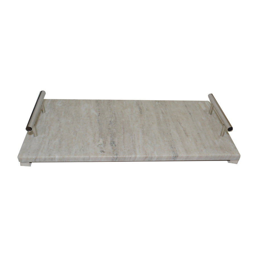 MARBLE 24X9 TRAY W/ METAL BASE , WHITE