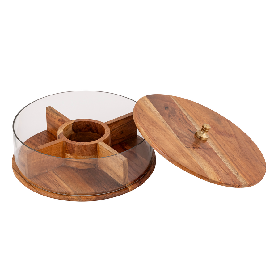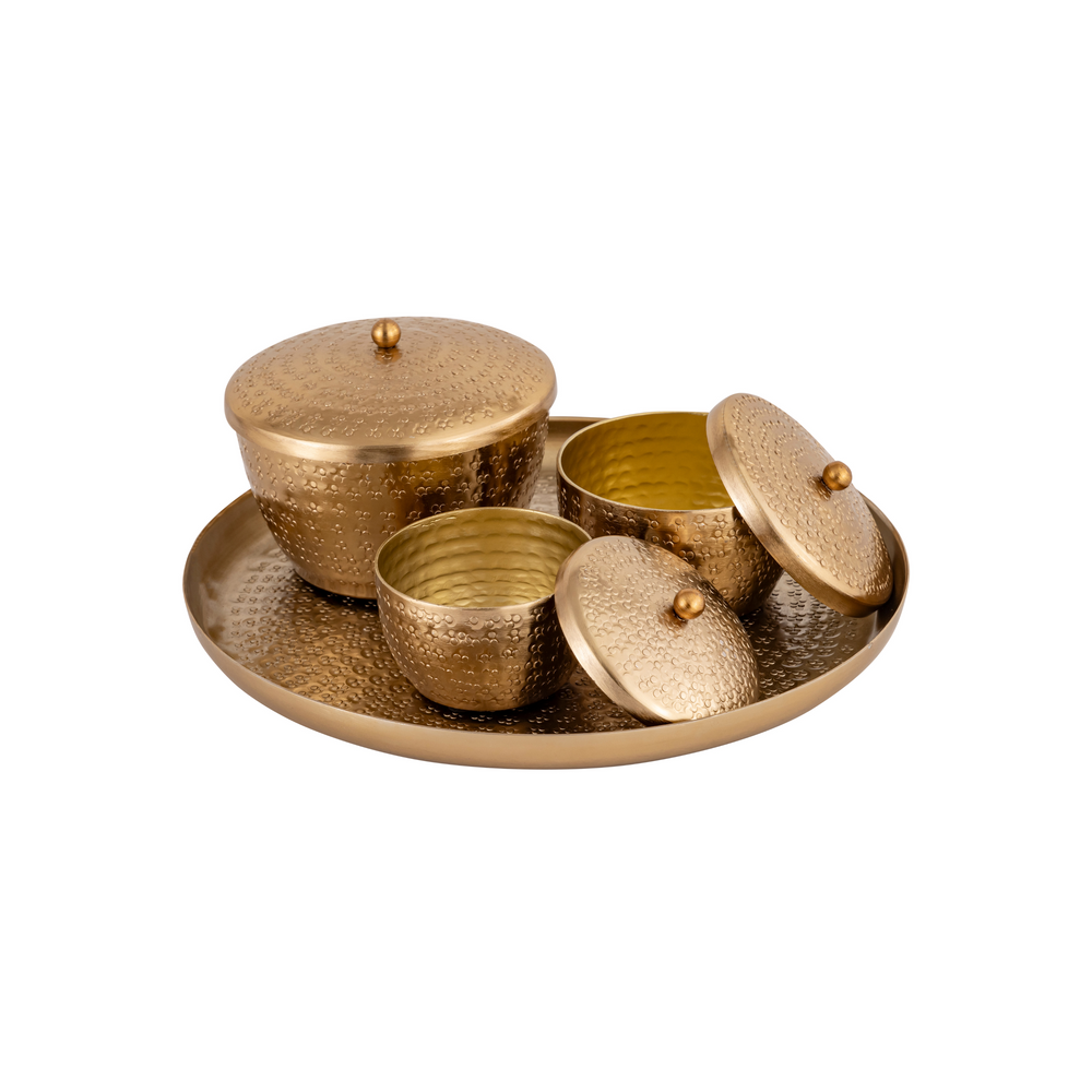 METAL 18" ROUND TRAY W/ HANDLES, GOLD