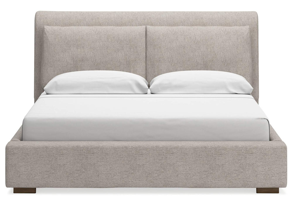 The Cabalynn California king upholstered bed sits comfortably at the intersection of modern lodge and farmhouse aesthetics. Your warm and welcoming disposition is reflected in its subtly tapered headboard and all-over upholstery. Even with its poise, this bed remains practical. Loose pillows on the headboard keep comfort a priority as you lay back to read or watch TV, defining your bedroom with reliable function and style.