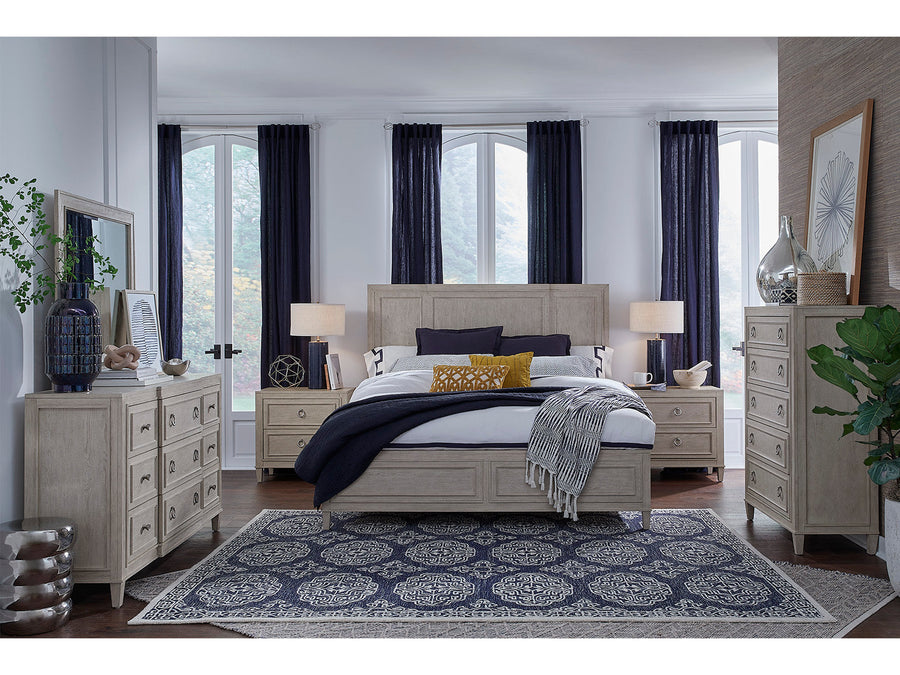 The Sheridan Storage Bedroom Set, part of the Sheridan Bedroom Collection by Magnussen, simplifies the creation of a beautifully functional bedroom. With its modern design, robust construction, and elegant Limestone finish, this collection offers an effortless way to elevate your bedroom's style and functionality.
