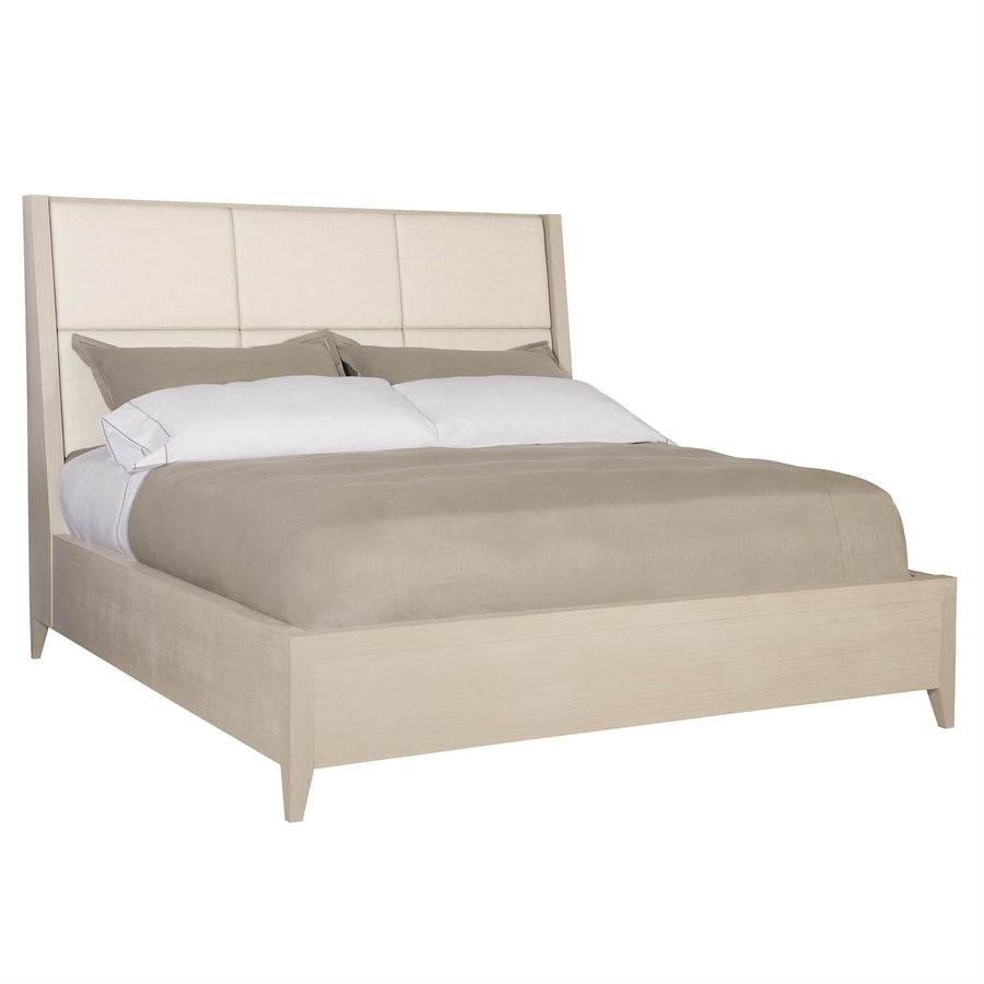 - Wood-framed, winged headboard with six inset upholstered panels - no welt