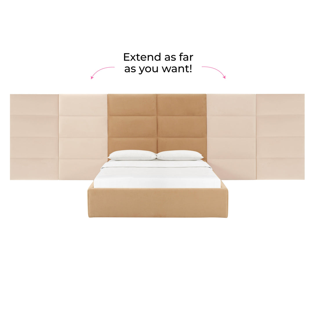 The exquisite Eliana Bed combines comfort, elegance, and contemporary design! The sturdy wood frame ensures durability and the luxurious velvet fabric offers a soft and plush touch to your bedroom. The rectangle-shaped headboard blocks allow for you to customize the width of the headboard. Available in a range of beautiful colors and multiple sizes, we have the perfect Eliana for you!
