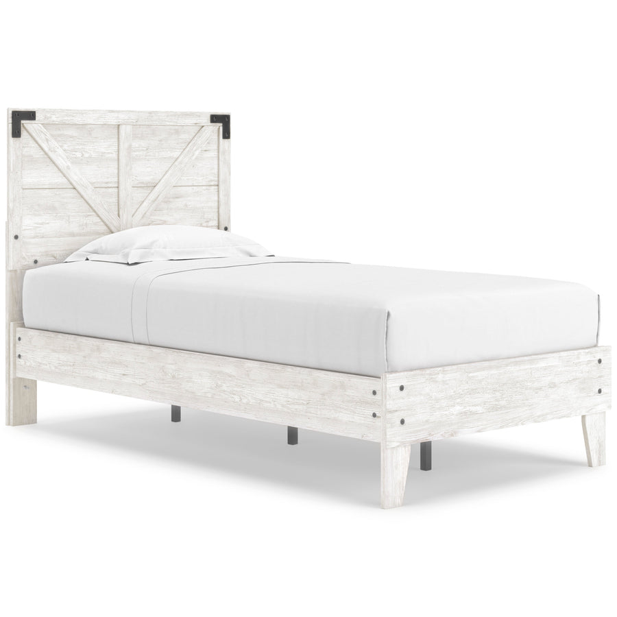 Give provincial a new meaning with the chic look of the Shawburn twin platform bed. The whitewash distressed finish keeps this piece light and fresh, as does its minimalist aesthetic.