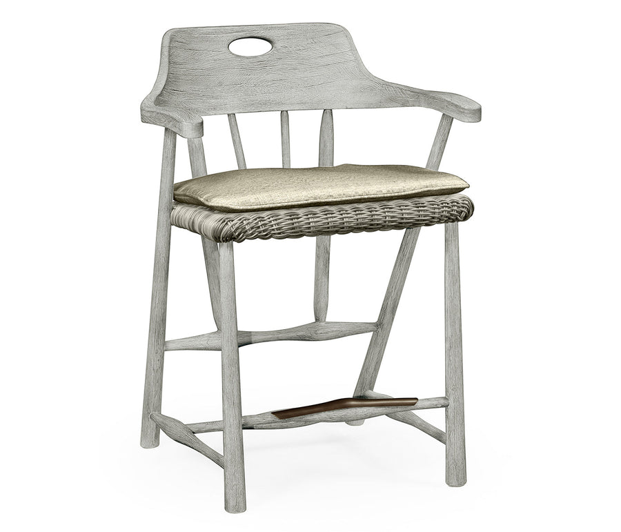 Name Smokers Style Cloudy Grey & Rattan Counter Stool with Cushion