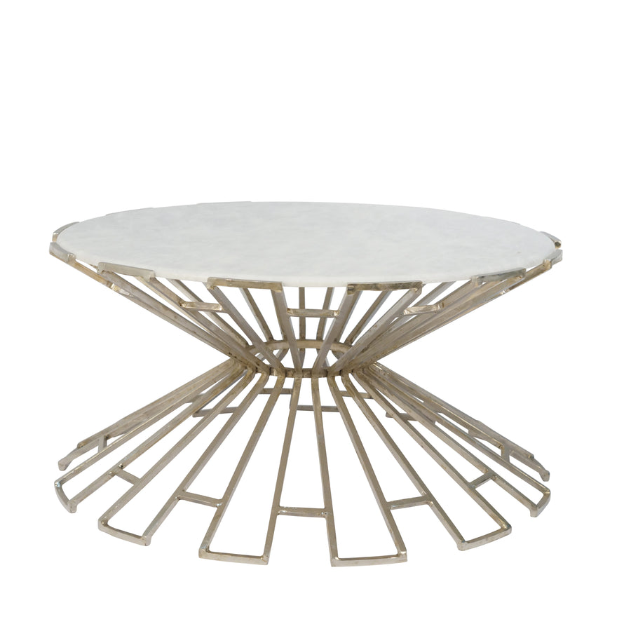 METAL & MARBLE ART DECO COCKTAIL TABLE, SILVER