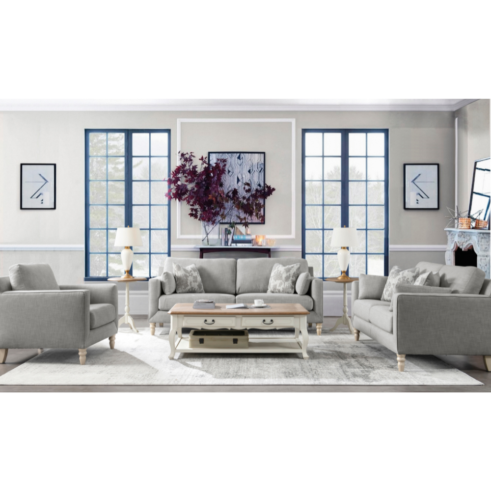 Enjoy spending time with family or friends in this inviting Nostalgia Grey Chair by Roots Furniture. This chic chair is very modern and unique, perfect for impressing while decompressing. With clean lines and stylish patterned pillows, you won't find another piece that combines ideal poshness with perfect softness.