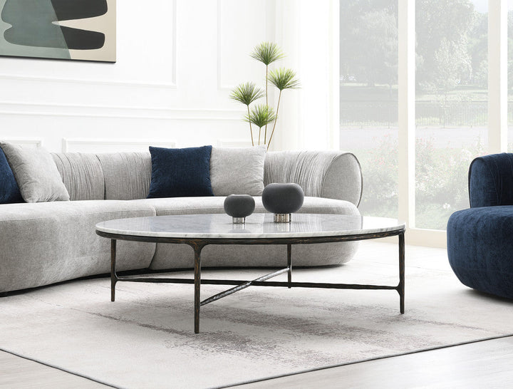 Round Silver Coffee Table with Marble Top