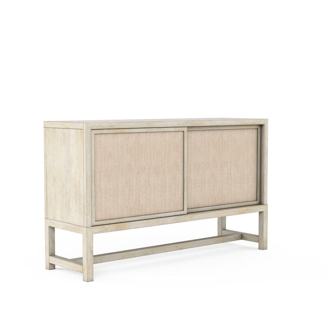 Behind this beautiful fa?ade, this sideboard offers versatile storage that provides plenty of space for all your essential items. Organically inspired style defines this piece, from the striking inset terrazzo stone top to the intriguing texture of its woven fronts. Behind each of the two sliding doors are a versatile adjustable shelf and drawer with silver lining.