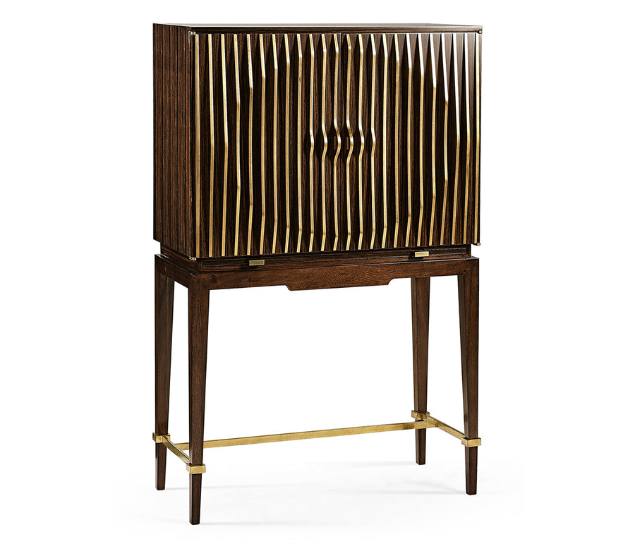 Curated Collection - Ebony & Ribbed Antique Satin Brass Drinks Cabinet