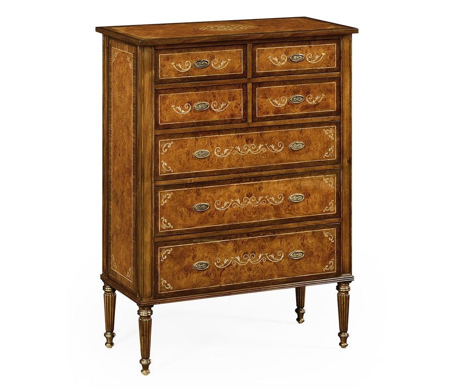 Duchess Collection - Burl & mother of pearl tall chest of drawers