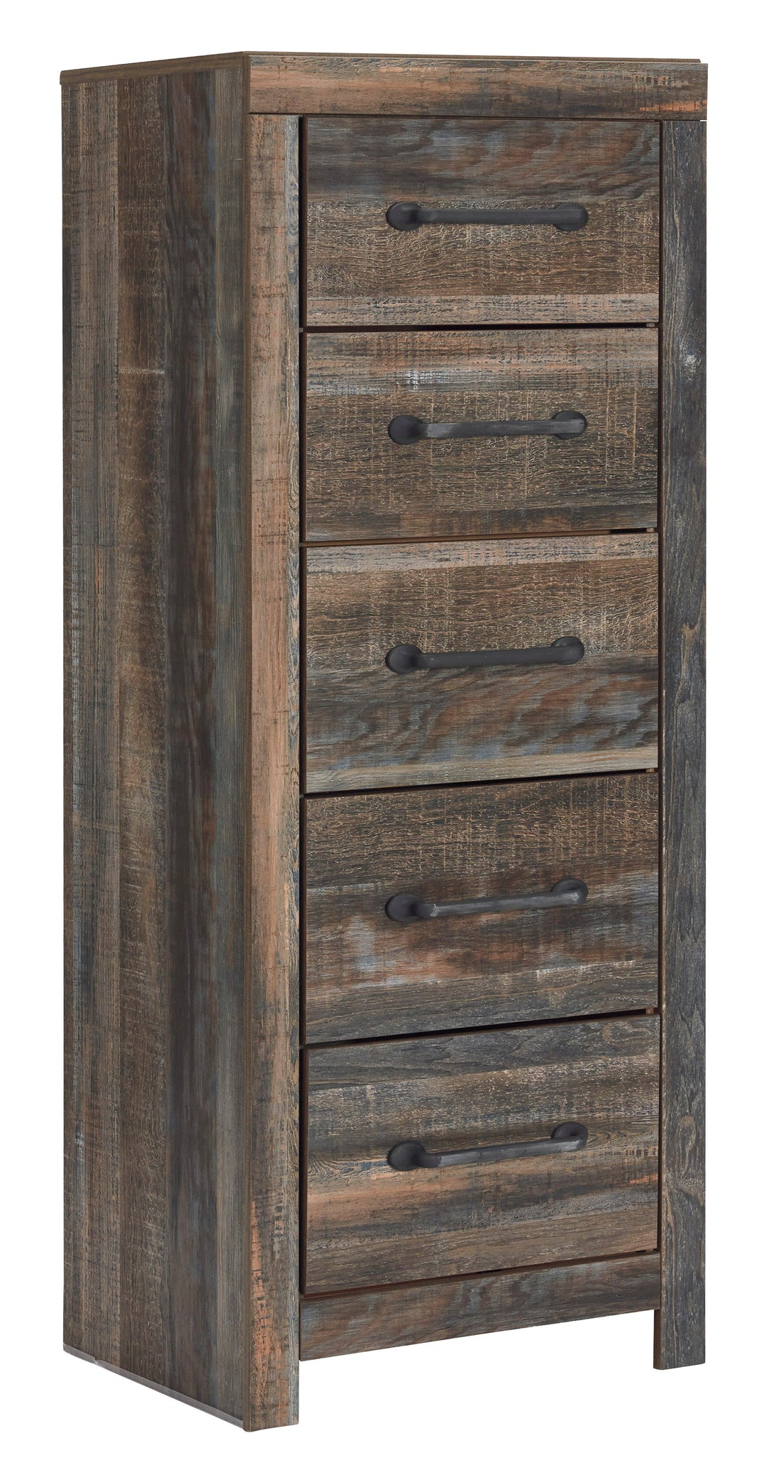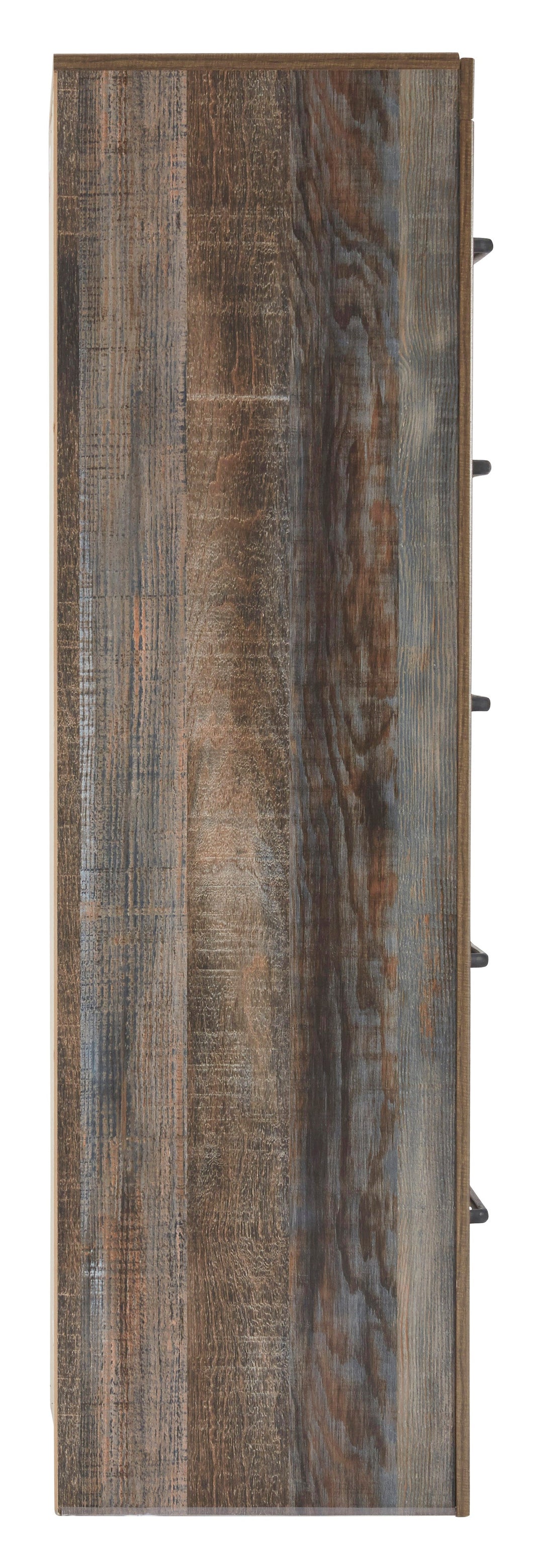 When merged in just the right way, rustic and industrial styles can make one happy marriage. Case in point: the Drystan narrow chest. A refined take on barn board beauty, its complex, replicated wood grain showcases hints of burnt orange and teal tones for a sense of weatherworn authenticity. Elongated drawer pulls elevate the aesthetic.