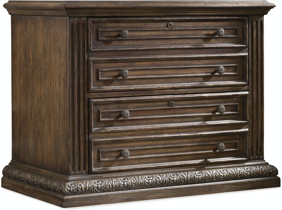 A stylish blend of classic design elements and a relaxed rustic finish, you will never guess this piece is a highly functional lateral file with two locking file drawers with Pendaflex letter/legal filing system. Use it in the living room, guest room, hallway or home office to get organized and add beauty and utility to any space. The groundbreaking Rhapsody Collection brings together classic design elements, grand scale, and a relaxed rustic finish to create an impassioned marriage of casual opulence. Exuberant scale and serpentine shapes infuse the pieces with emotion, while timeless motifs like scrolls, rope twist molding, the acanthus leaf and fleur de lis anchor Rhapsody in old world charm. Building on the grand scale and classic European design is the defining element of the collection: a walnut-colored finish inspired by the natural yet rustic nature of reclaimed woods in beautiful patinas.
