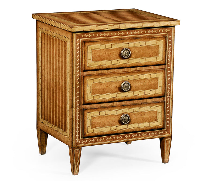 Versailles Collection - Satinwood & Floral Inlay Bedside Chest of Drawers