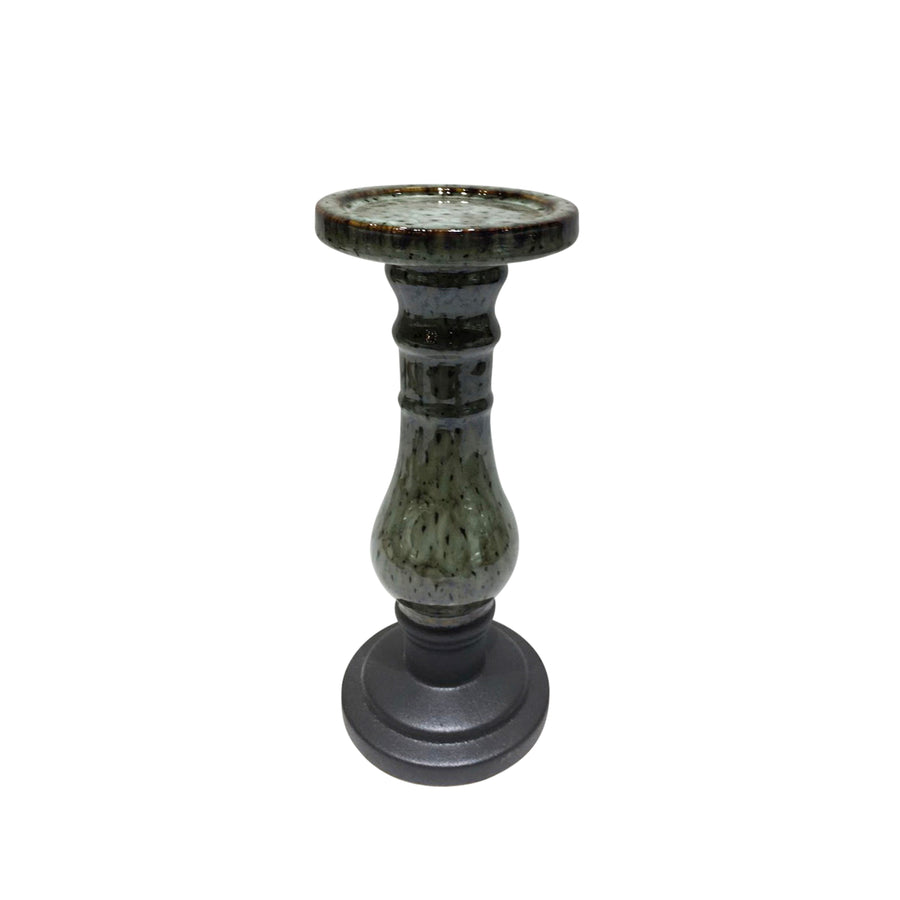 CERAMIC 11" CANDLE HOLDER, GRAY/BLACK