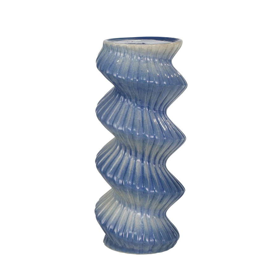 CERAMIC 13" SPIRAL CANDLE HOLDER, BLUE MIX