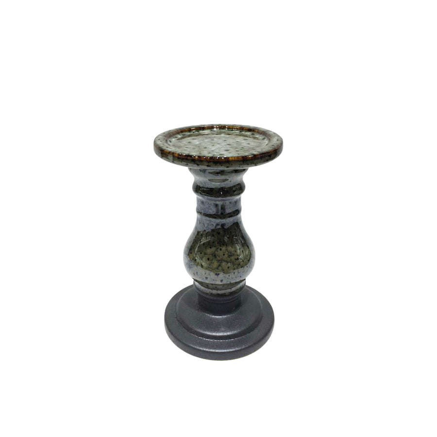 CERAMIC 8" CANDLE HOLDER, GRAY/BLACK