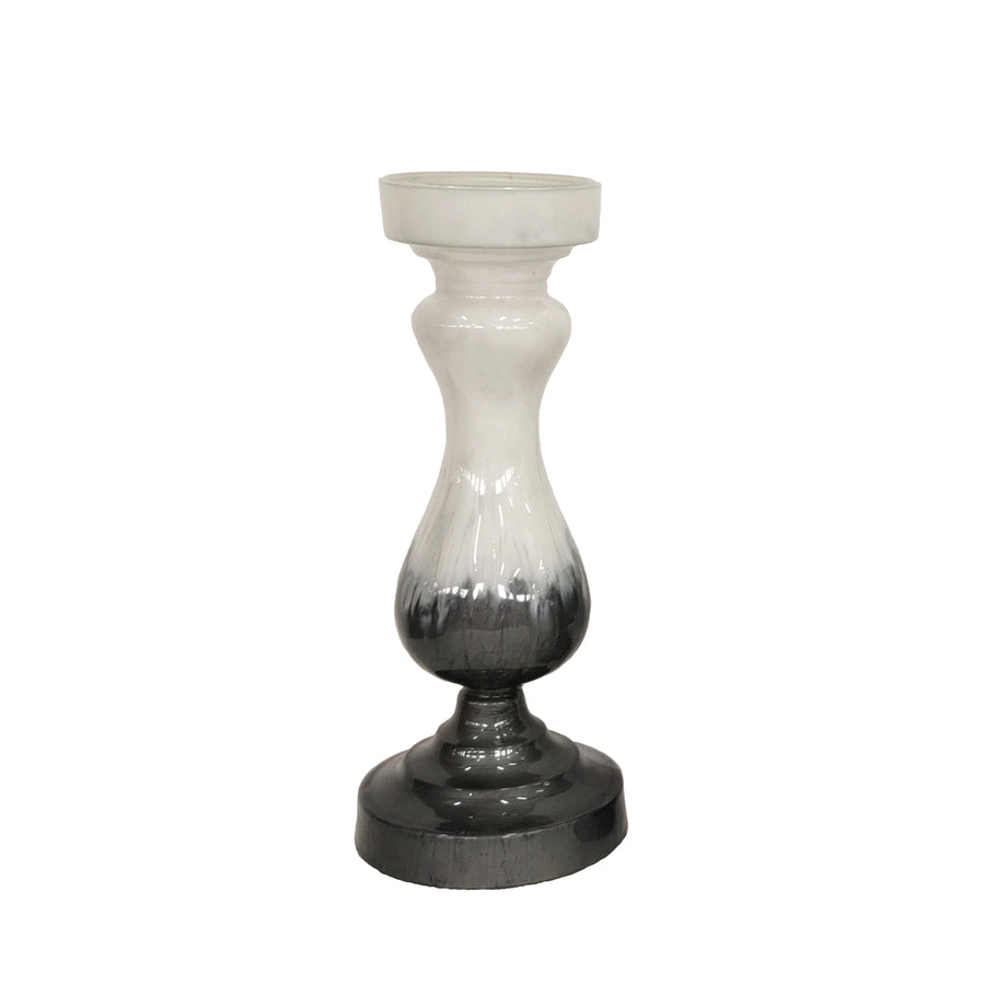 GLASS, 16" CANDLE HOLDER, WHITE/BLACK
