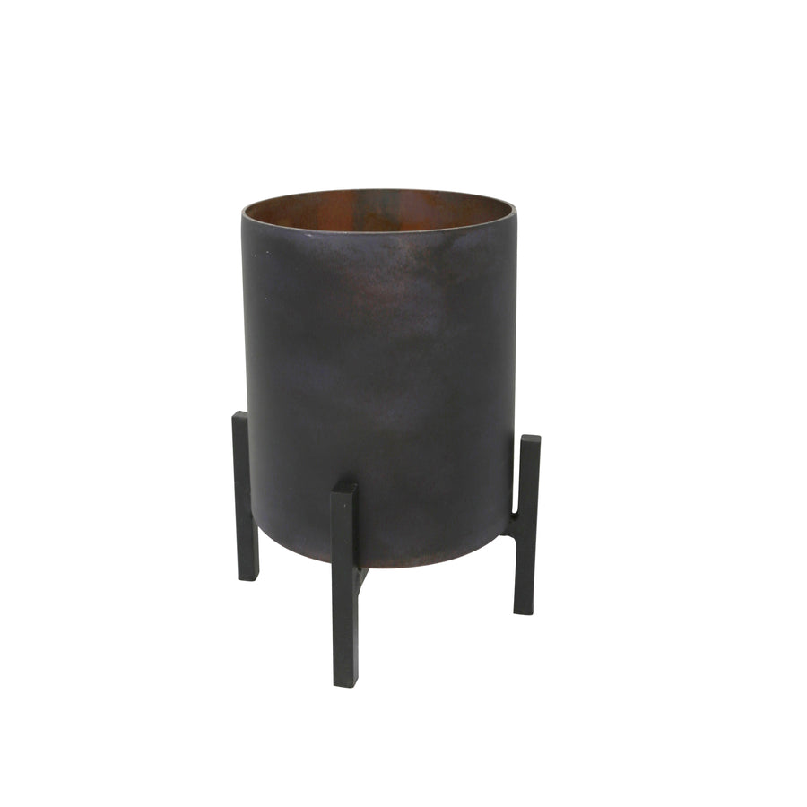 GLASS HURRICANE W/ IRON STAND, 9", CHARCOAL