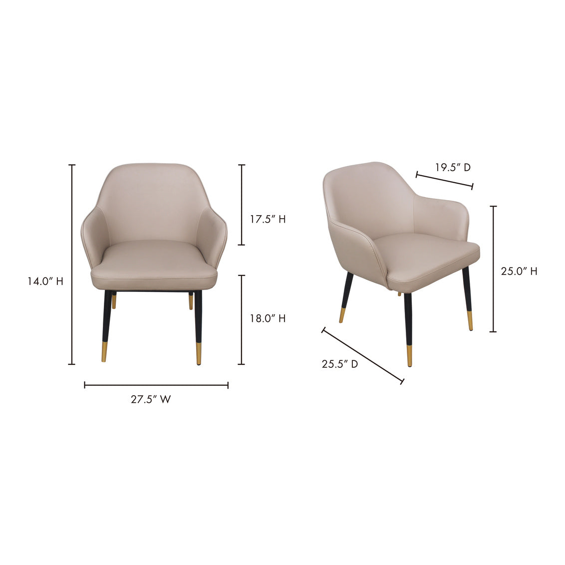 The Berlin Accent Chair is all about sophisticated elegance. With faux leather upholstery and brass detailing, this chair packs a punch. Rounded sides and a sturdy back make for a comfortable addition to your home.